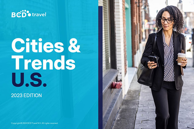 Entdecken Sie mit dem BCD "Cities & Trends" Report die neuesten Erkenntnisse über Geschäftsreisen in den USA im Jahr 2023. Erfahren Sie mehr über die wichtigsten Trends bei Reisezielen, Flugrouten und Mietwagen. Optimieren Sie Ihre Reisestrategien, kontrollieren Sie die Kosten und beurteilen Sie die Performance Ihres Unternehmens.