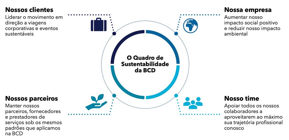 Para impulsionar ainda mais a sustentabilidade para esses públicos, é fundamental que pensemos além do carbono. É por isso que a definição de sustentabilidade da BCD é ampla – e engloba muitas questões, desde o bem-estar e a Diversidade, Equidade e Inclusão, até à natureza, impacto social e ação climática.