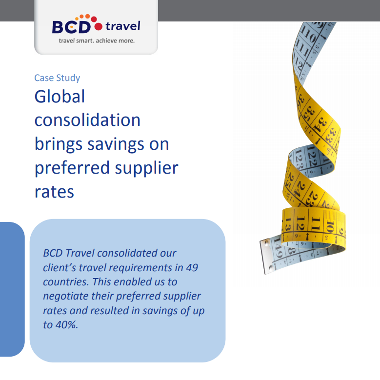 We consolidated our client’s travel requirements in 49 countries, enabling us to negotiate their preferred supplier rates – resulting in savings of up to 40%.